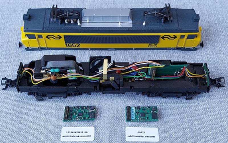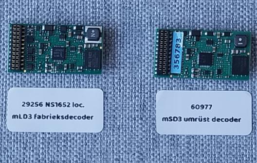 In deze loc. zit een mLD3 type decoder gemonteerd, een loc. decoder type (de L van Loc) zonder uitgebreide geluidsfunctie mogelijkheden vanwege het beperkte geheugen in deze decoders. Er bestaan ook mSD3 type decoders (de S van Sound) welke meer geheugen hebben en daardoor geschikter zijn als er veel extra geluidjes in een locomotief gewenst zijn.