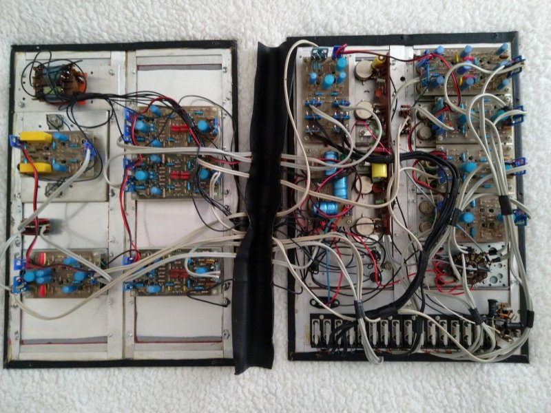 De mengeenheid mengt dus vier ingangen die vanaf het patchpaneel worden toegevoerd; de overige twee zijn afkomstig van twee toonregel eenheden in het deksel, die hun ingangssignaal eveneens via het patchpaneel ontvangen. Er kunnen dus eenheden of apparaten tussen worden geschakeld door ze simpel op de connectoren aan te sluiten, terwijl eenheden in het koffertje gebruikt kunnen worden om onafhankelijk van het paneeltje weer andere apparaten aan te sturen. Zo maak je dus slim gebruik van de mogelijkheden zonder direct met een formaat vliegdekschip te hoeven slepen!