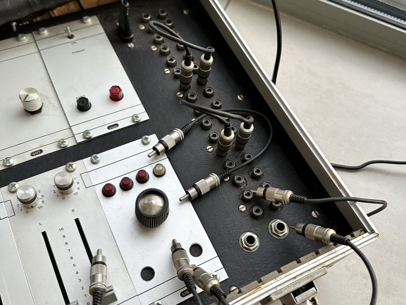 Daarin zaten een aantal zelfbouw eenheden van Philips mengpanelen en een intrigerend paneeldeel met allerlei connectors voor signaal in- en uitgangen.