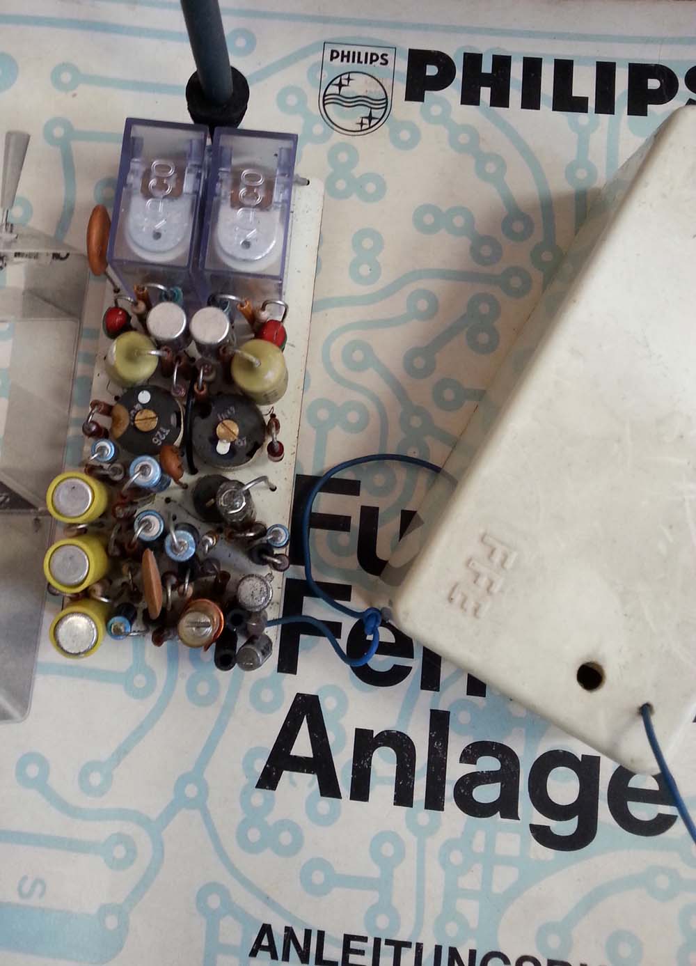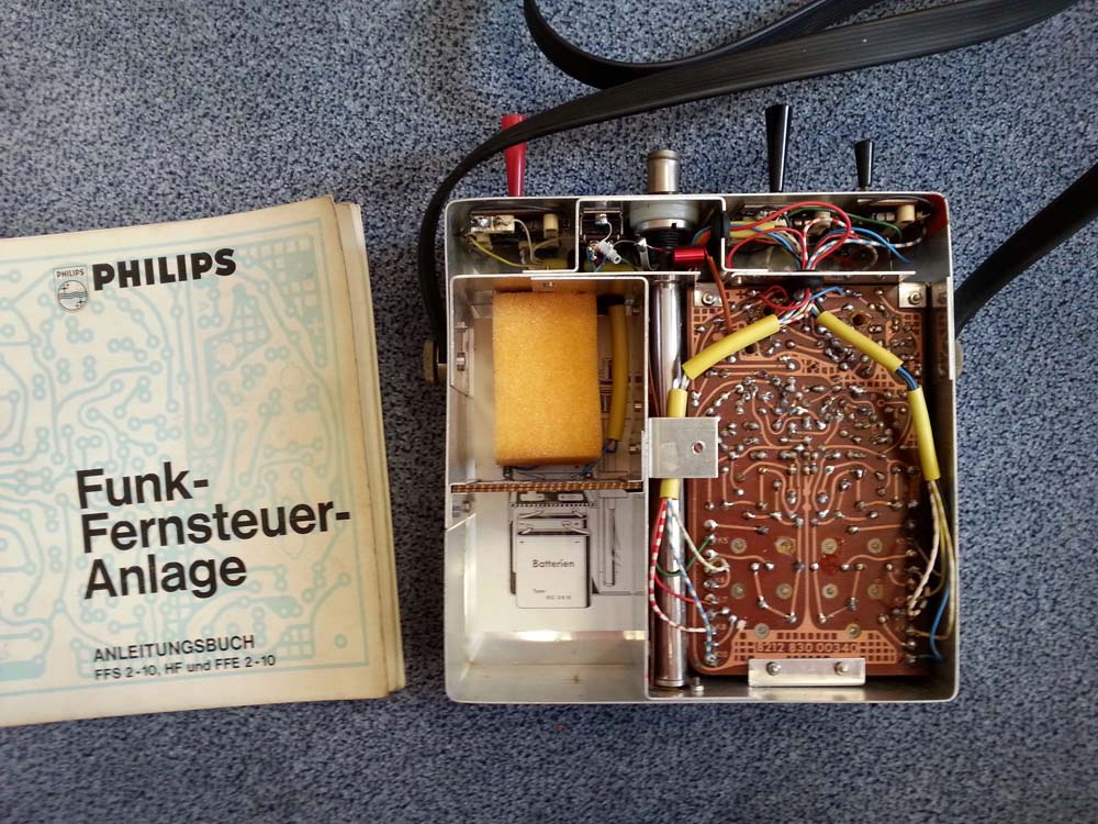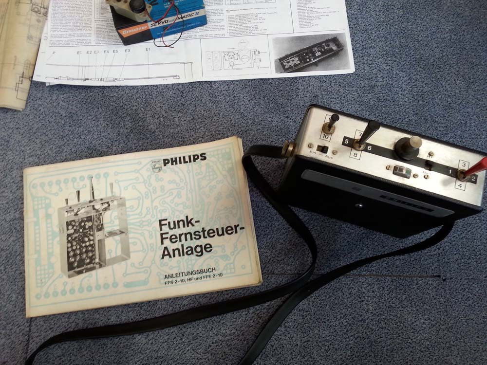 -Na de lange zoektocht kwam er een verrassend antwoord van een modelbouwforum in Duitsland. De Heer G.S. uit de regio Dortmund en hobbyist in de modelbouw had zo een PHILIPS modelbouwsturing nog maar pas in handen gekregen voor nazicht. Hij had deze oude RC besturing nog nooit eerder gezien en nieuwsgierig ging hij op zoek naar wat meer informatie over deze vreemde en onbekende zelfbouwkit. Toevallig of niet maar het eerste en zo goed als enige zoekresultaat op Google was gelinkt aan mijn bericht op datzelfde Duits modelbouwforum. Omdat hij in het bezit was van de complete handleiding vond hij het interessant om op mijn bericht te reageren. Enkele dagen later heeft hij me dan een PDF bestand bezorgt van deze volledige handleiding en bouwbeschrijving. Bij deze wil ik hem dan ook hiervoor nogmaals bedanken.