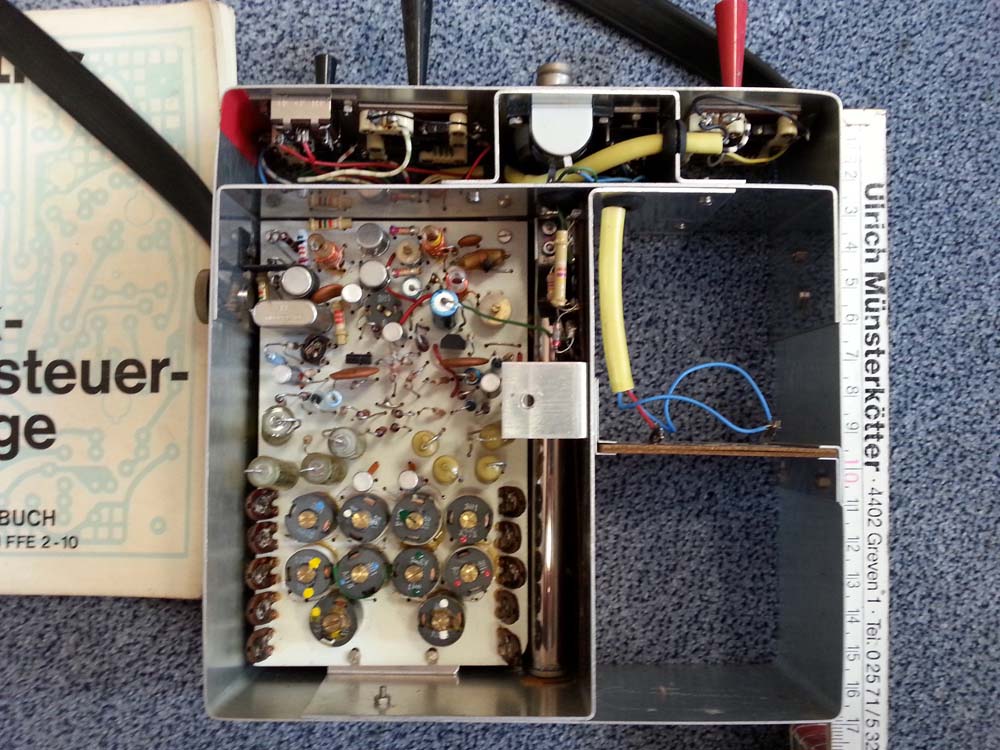 -De "FFE" of "Funk Fernsteuer Empfänger" is een 2-kanaals pendelontvanger (superreg.), de pendelfrequentie is 70 à 80 Khz. De antennekring bestaat uit een geaarde basisschakeling waarvan de ingangskring is afgestemd op de zendfrequentie van 40.68Mhz. Na demodulatie gaat het LF signaal naar een drietraps tegengekoppelde gelijkstroomversterker waarvan de laatste transistor als emitorvolger is geschakeld. De 2-kanaals ontvanger kan uitgebreid worden naar 10-kanalen door 4 aparte modulen, deze modulen zijn via speciale DIN stekkertjes verbonden met de ontvanger. Elke module bestaat zoals de ontvanger print uit twee bandfilters (twee kanalen) die afgestemd zijn op het unieke LF signaal van de zender. De Kanaal uitgangen zijn gebufferd met een relais. Bij ontvangst van het juiste LF signaal zal de betreffende module het uitgangsrelais activeren net zolang dat het LF signaal ontvangen word. De kleur van de ontvangerbehuizing is "wit" en deze van de verscheiden kanaal modulen respectievelijk Geel, Groen, Rood en Blauw.