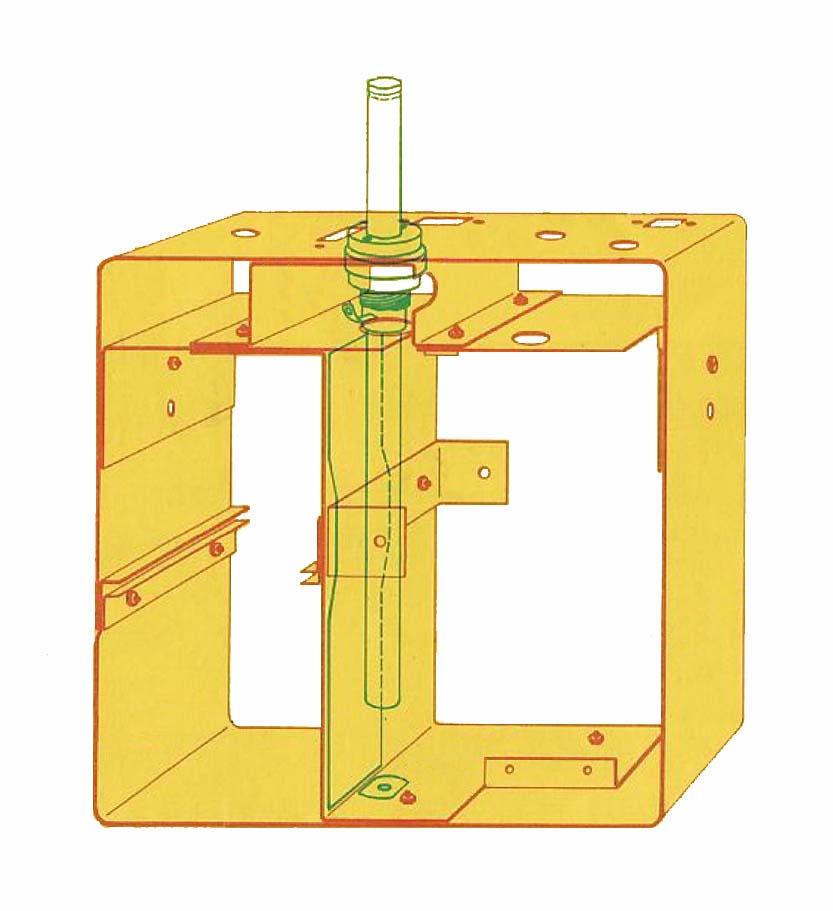 -In de behuizing van de zender zijn er ook nog twee compartimenten voorzien voor de voeding. De voedingsspanning is ongeveer 12V en word normaal geleverd door drie batterijen van 4,5V , het is ook mogelijk om hiervoor vaste of eventueel oplaadbare batterijen te gebruiken.